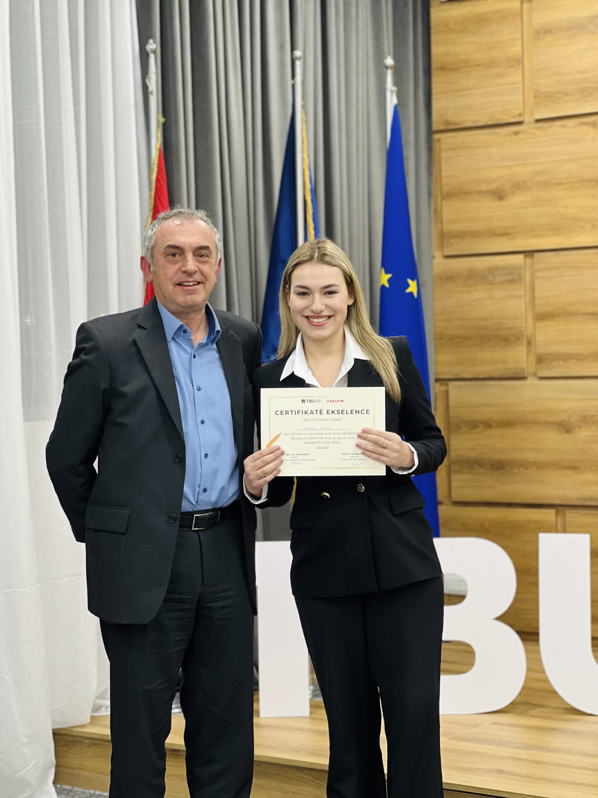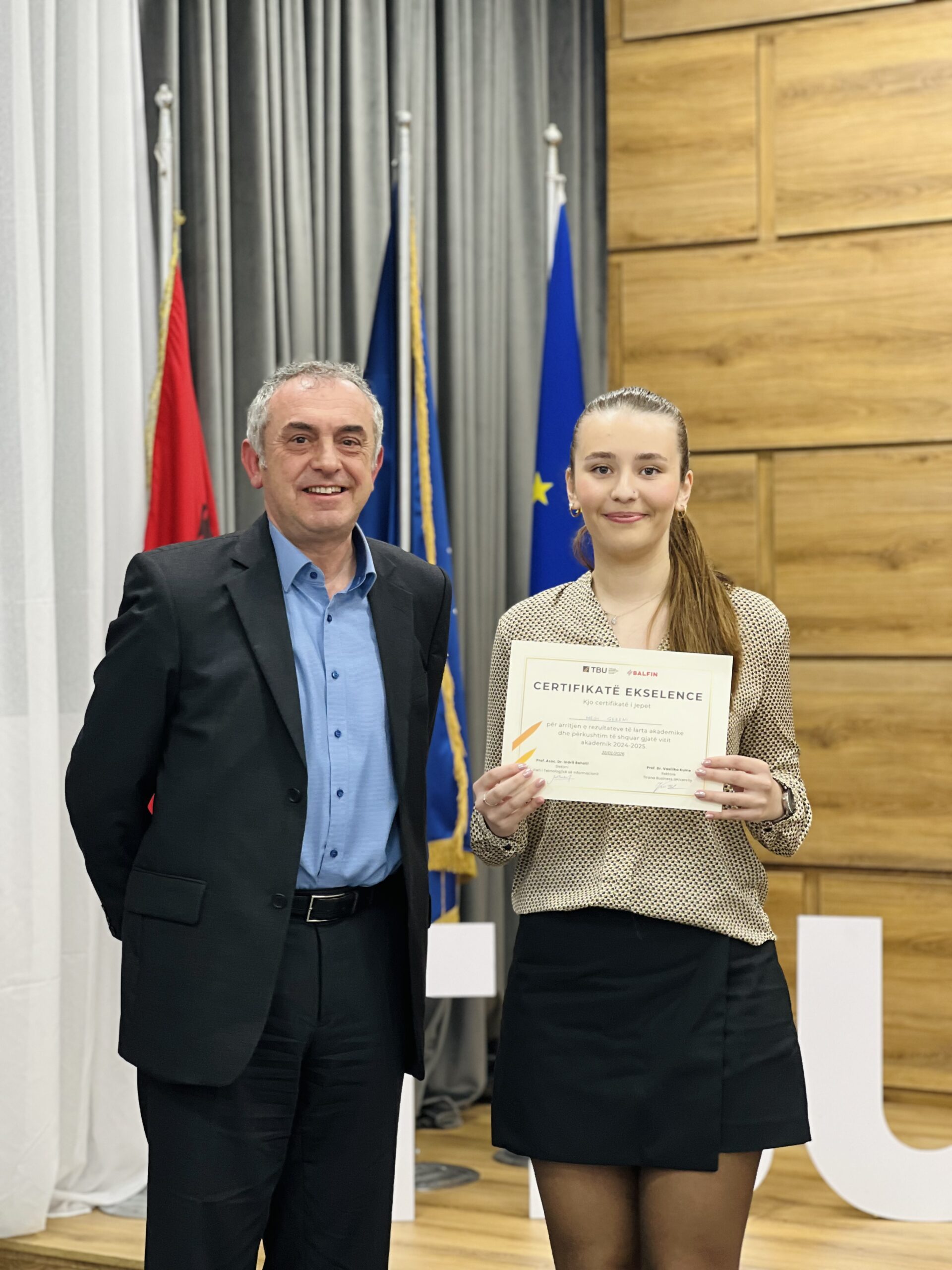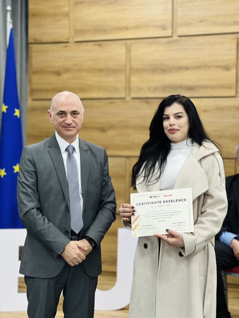 Dhjetëra studentë nga Fakulteti i Teknologjisë së Informacionit dhe Fakulteti i Biznesit dhe Drejtësisë, si dhe disa Alumni të TBU, u vlerësuan me certifikata mirënjohjeje nga dekanët Prof. Dr. Elvin Meka dhe Prof. Asoc. Dr. Indrit Baholli.