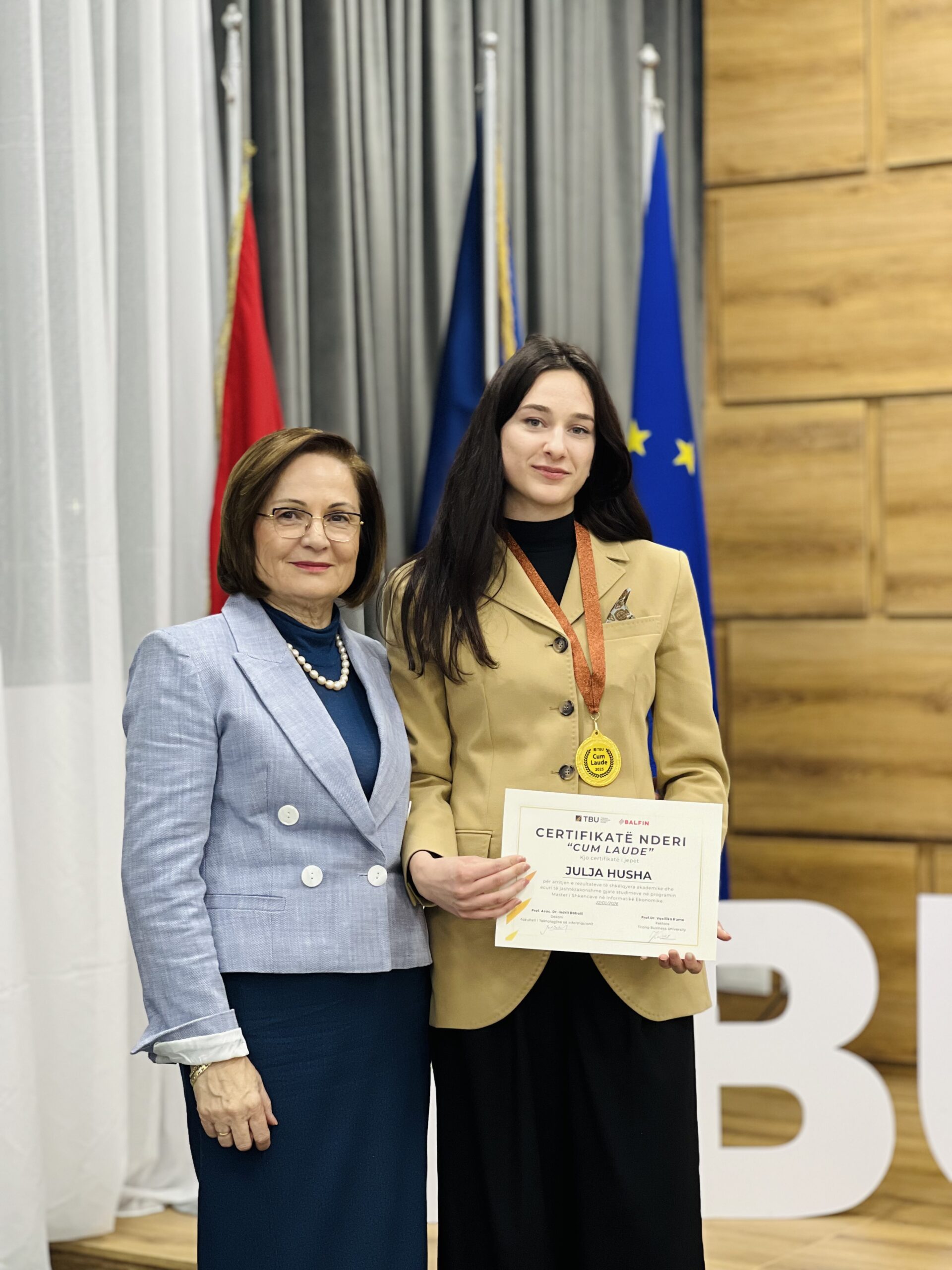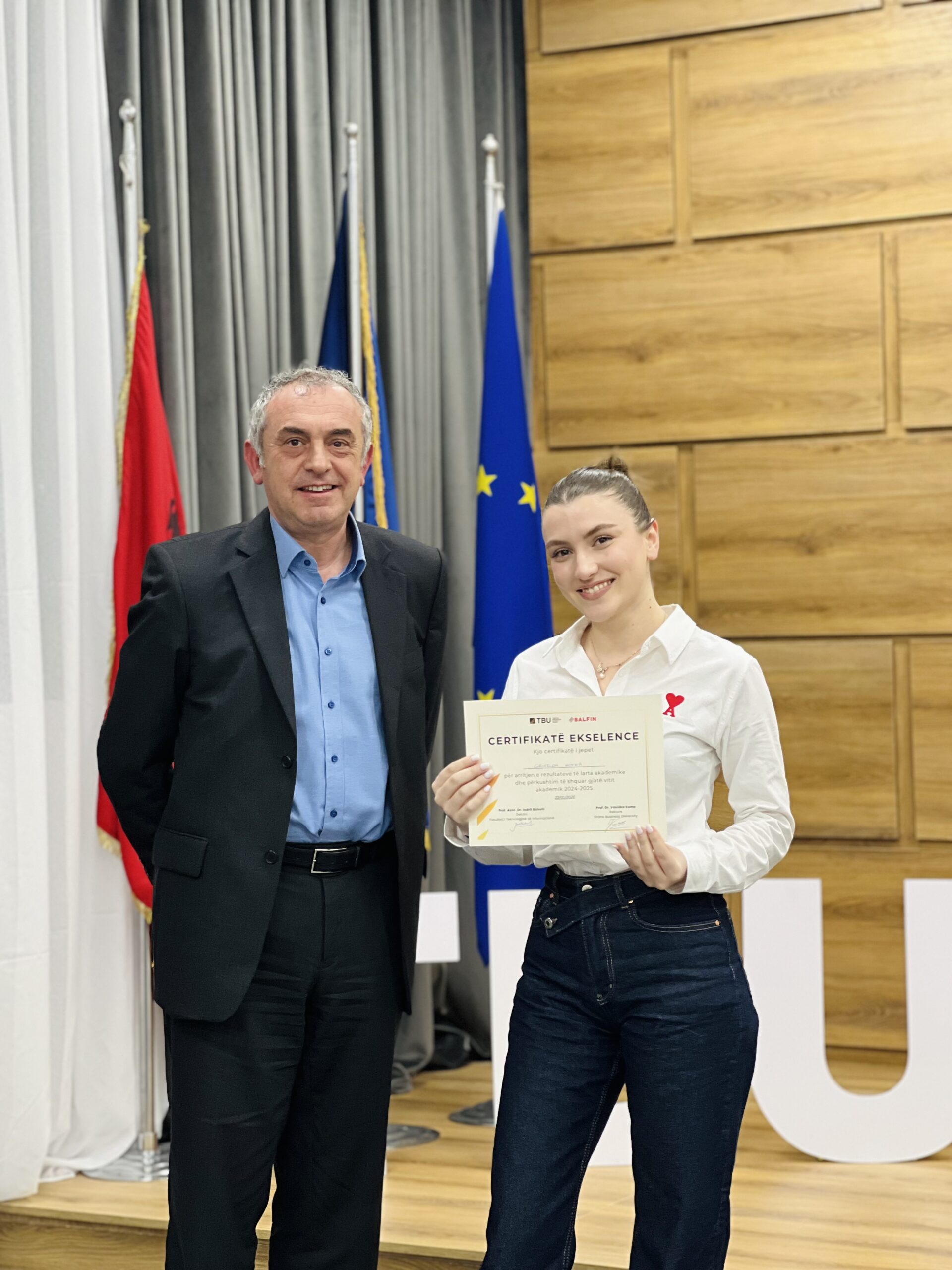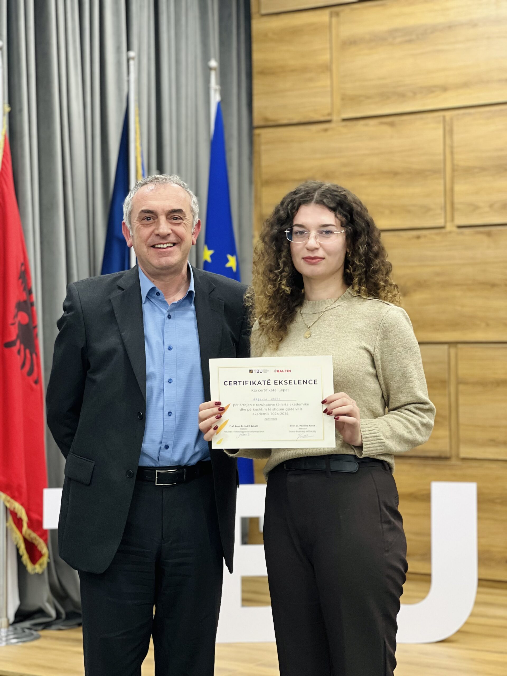 Dhjetëra studentë nga Fakulteti i Teknologjisë së Informacionit dhe Fakulteti i Biznesit dhe Drejtësisë, si dhe disa Alumni të TBU, u vlerësuan me certifikata mirënjohjeje nga dekanët Prof. Dr. Elvin Meka dhe Prof. Asoc. Dr. Indrit Baholli.
