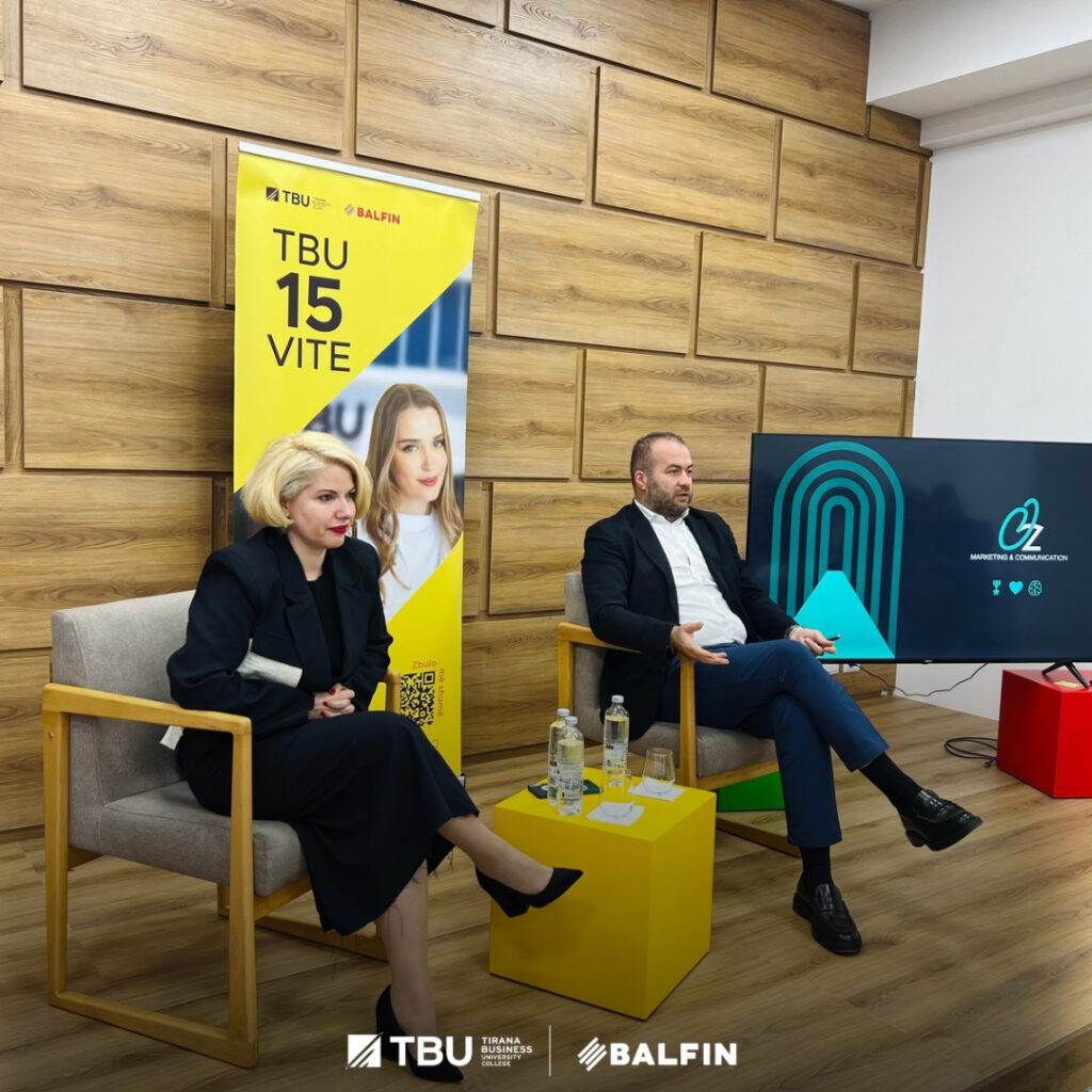 Today, as part of the CEO Talks program, students at Tirana Business University participated in an inspiring session with Ms. Jori Vila, Founder of Oz Marketing and marketing expert with over 18 years of experience in brand building and communication campaigns. The session was opened by the Administrator of TBU, Dr. Altin Sholla, who emphasized the importance of connecting students with industry professionals and the value these sessions bring to their academic and professional development.