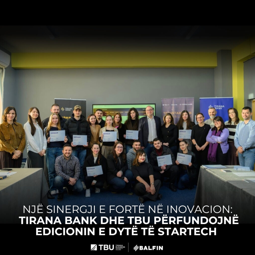 NJË SINERGJI E FORTË NË INOVACION: TIRANA BANK DHE TBU PËRFUNDOJNË EDICIONIN E DYTË TË STARTECH