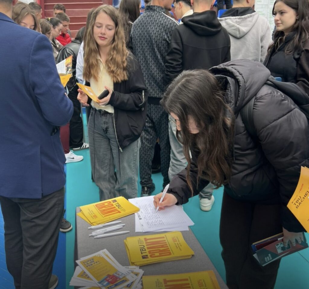 Pjesëmarrja e TBU në panairin “Work & Study” u shoqërua me një interes dhe kërkesë të lartë nga maturantët në shumë qytete të vendit, të cilët patën mundësinë të njihen nga afër me programet e studimit, stafin akademik dhe filozofinë e universitetit që e vendos studentin në qendër.